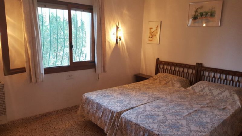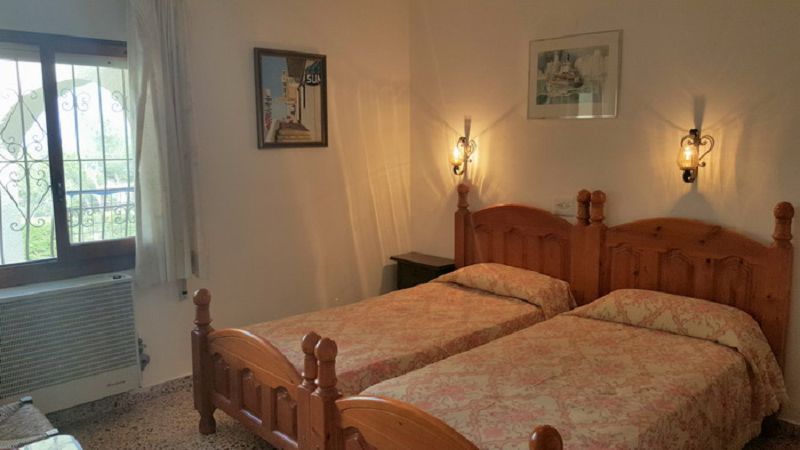 Une chambre avec deux lits de 90 x 200 cm et une salle de douche séparée